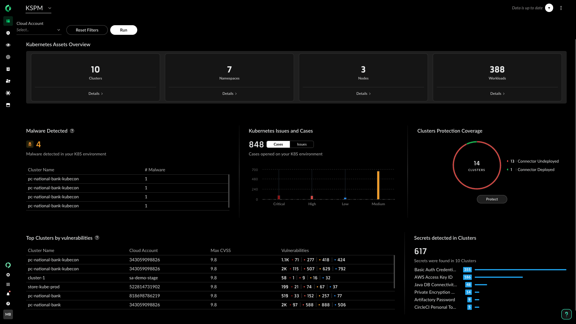 Encontre e corrija as configurações incorretas do Kubernetes e os riscos de segurança com correção guiada. Fortaleça a postura do Kubernetes e atenda à conformidade com os benchmarks de CIS para clusters do Kubernetes EKS, AKS e GKE.