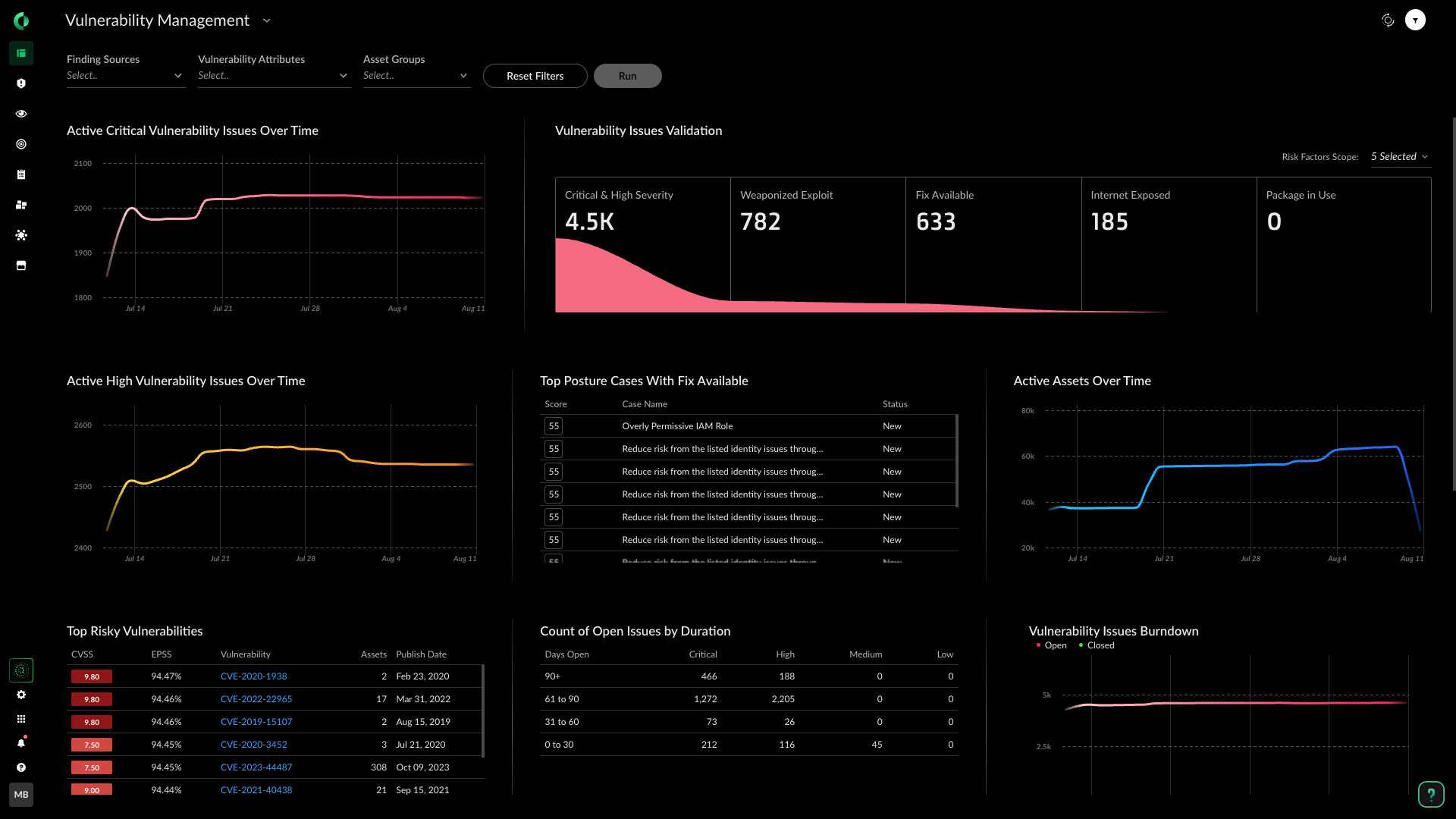 Priorize os riscos e reduza a fadiga de alertas, revelando vulnerabilidades críticas por meio de fatores de risco correlacionados, como exposição externa, permissões excessivas, configurações incorretas, dados confidenciais, segredos e malware.
